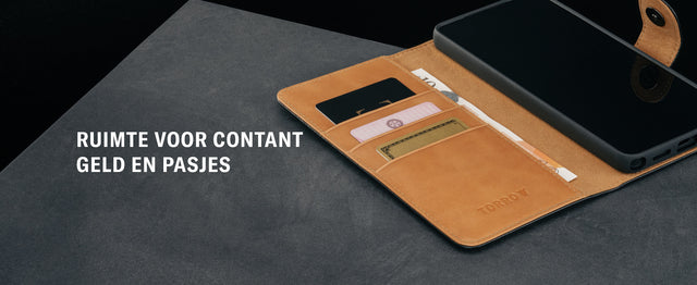 - Plaats voor 3 pasjes, met een vak voor bankbiljetten.